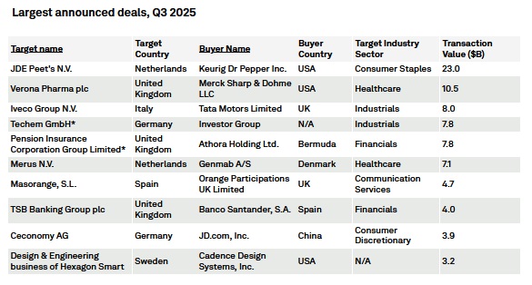 Piața europeană de M&A: tranzacții mai mari, dar mai puține, în T3 2025